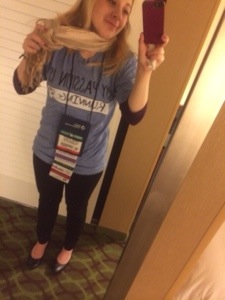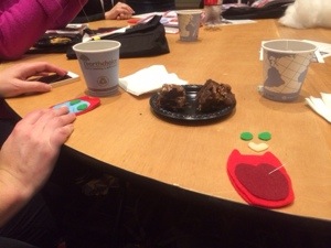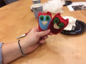 Saturday and Sunday I spent five hours at the booth, and then spent my off-time attending sessions, resting, and catching-up with classmates/colleagues (I have colleagues?) At point one point, my friend and former classmate/co-president of SCARLA Jen and I attended a session of sewing small felt owls (in conjunction with an author’s book talk), which turned out to be the perfect de-stress/let’s-stop-talking-about-the-future-of-everything break. My new mission: bringing more crafting into libraries for stress relief.