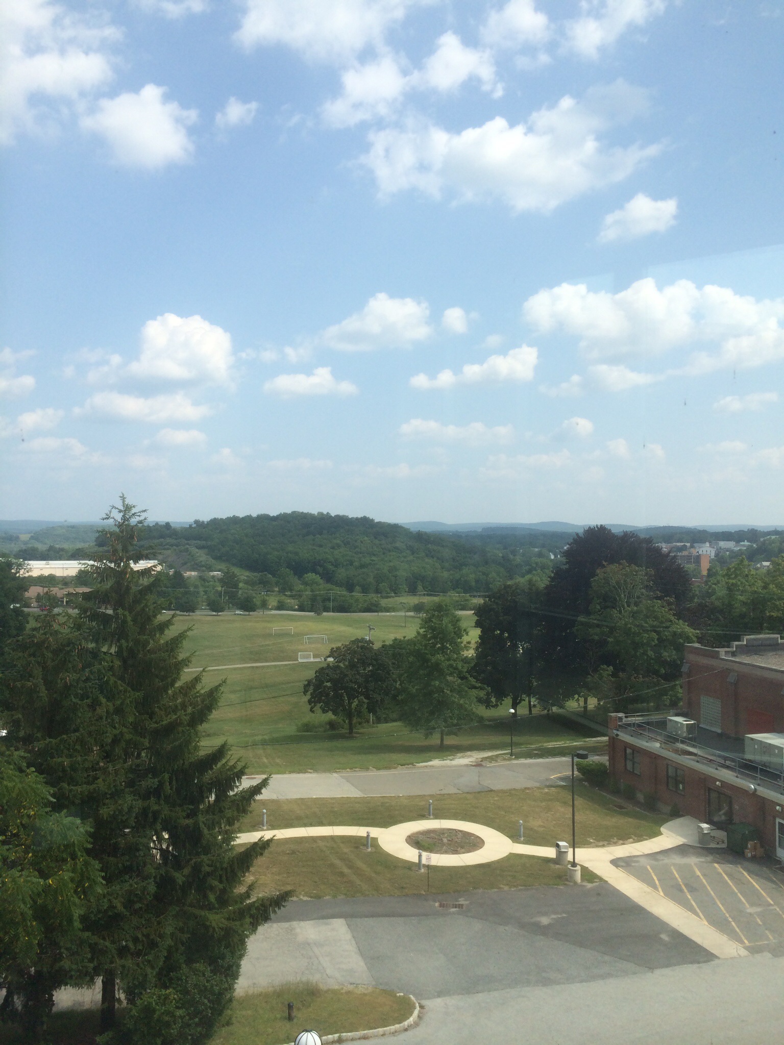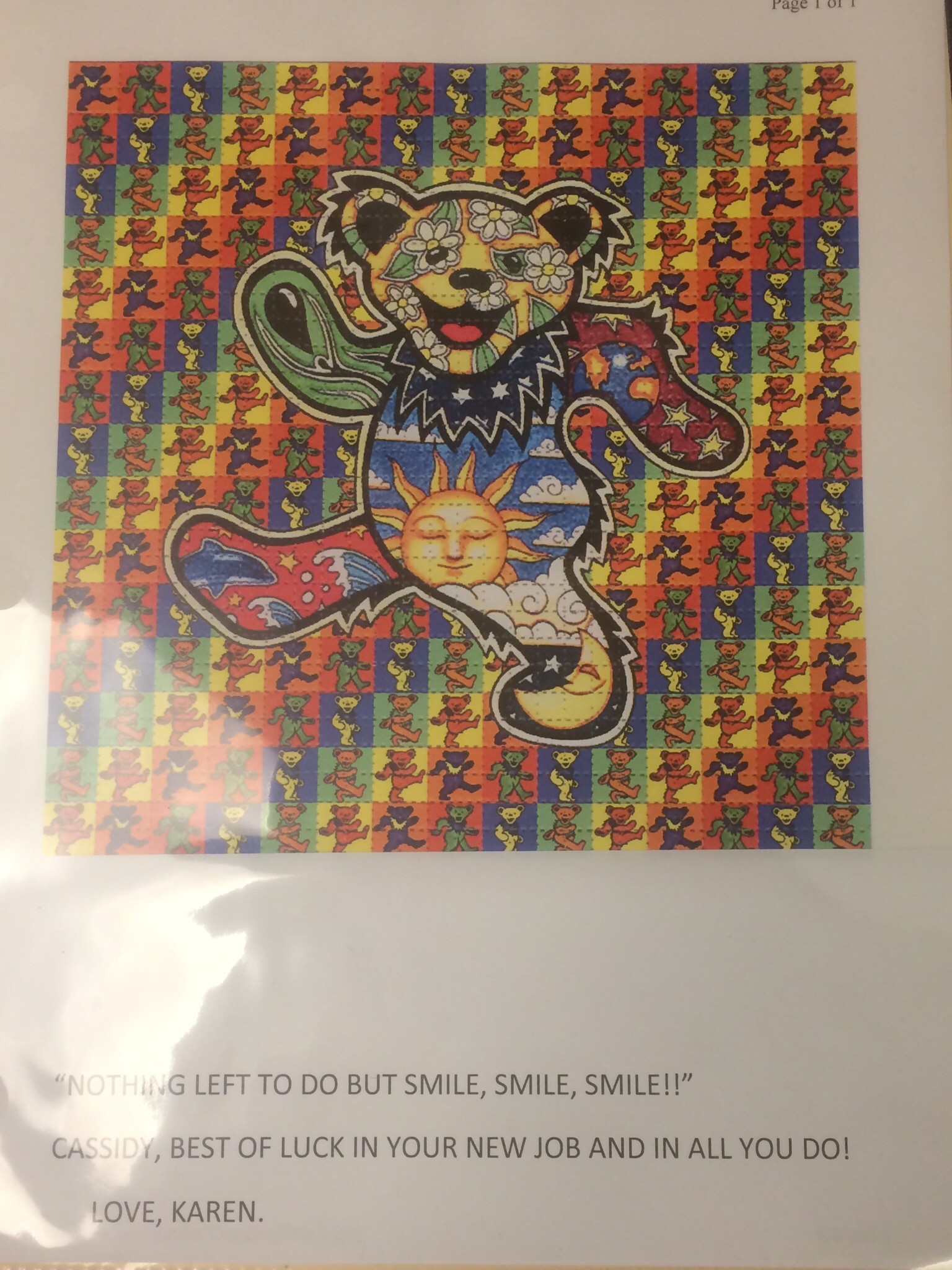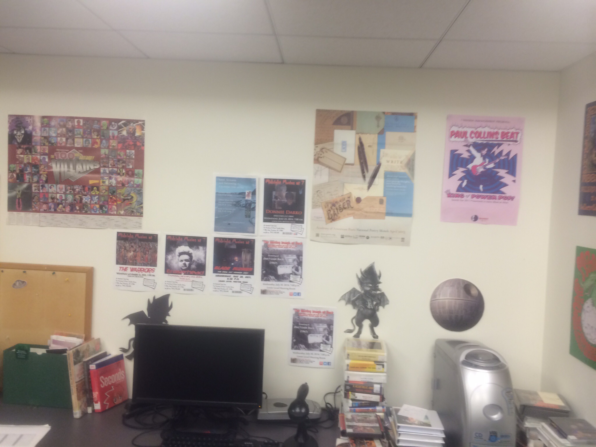 Clockwise from top left: a very nice going-away card, a final shot of the office wall, cookies I baked for my co-workers, and one final view from the College Library.